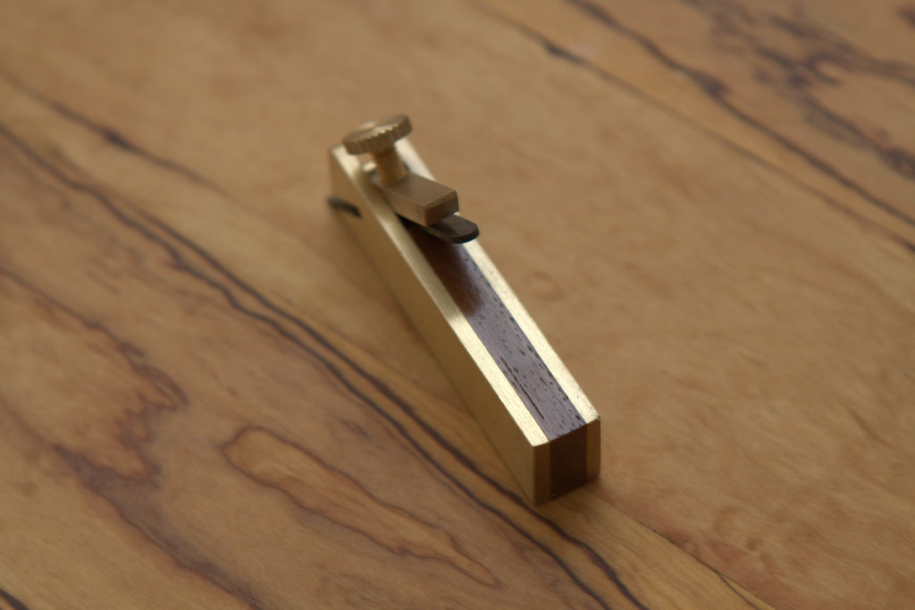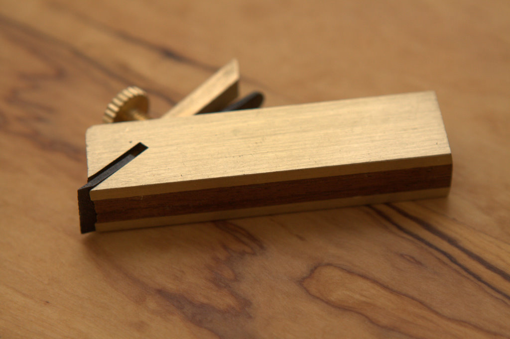 Bullnose plane: 3″ L x 1/2″ W x 1/16″ H with 23° blade angle