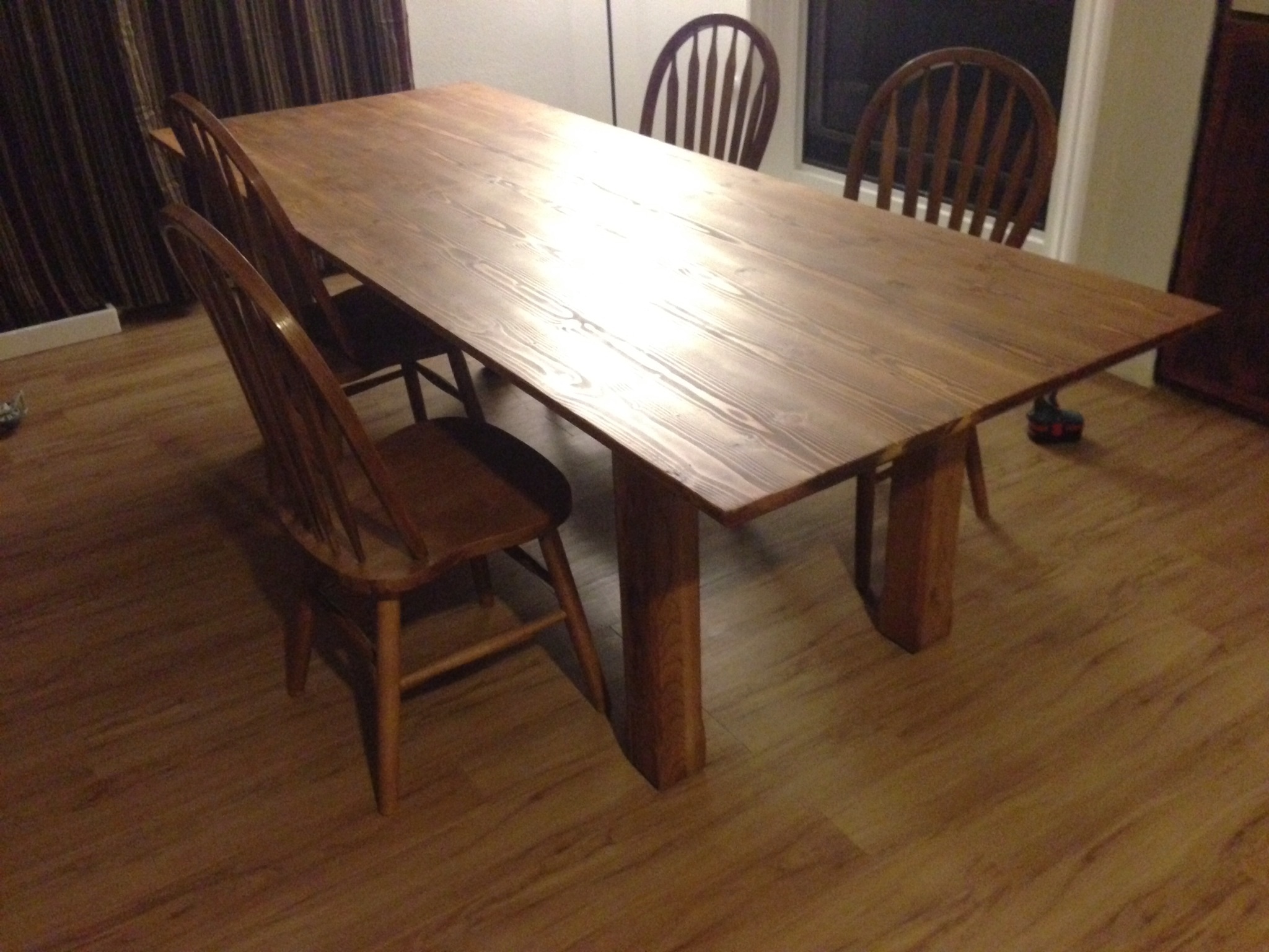 Building a Farmhouse Table – We needed a new table since the foe table we had was coming apart. I did go and see if there is some solid wood ones out there but I thing the economical environment is so bad that almost everything is made from chip board or Mdf. All the wood for this project put me back about $100. I finished the table with a dark walnut teak oil finish and after it was dry I applied wax as well, this left me with a nice waterproof surface. All and all the table came out pretty well and the Kids love the big table to sit at.