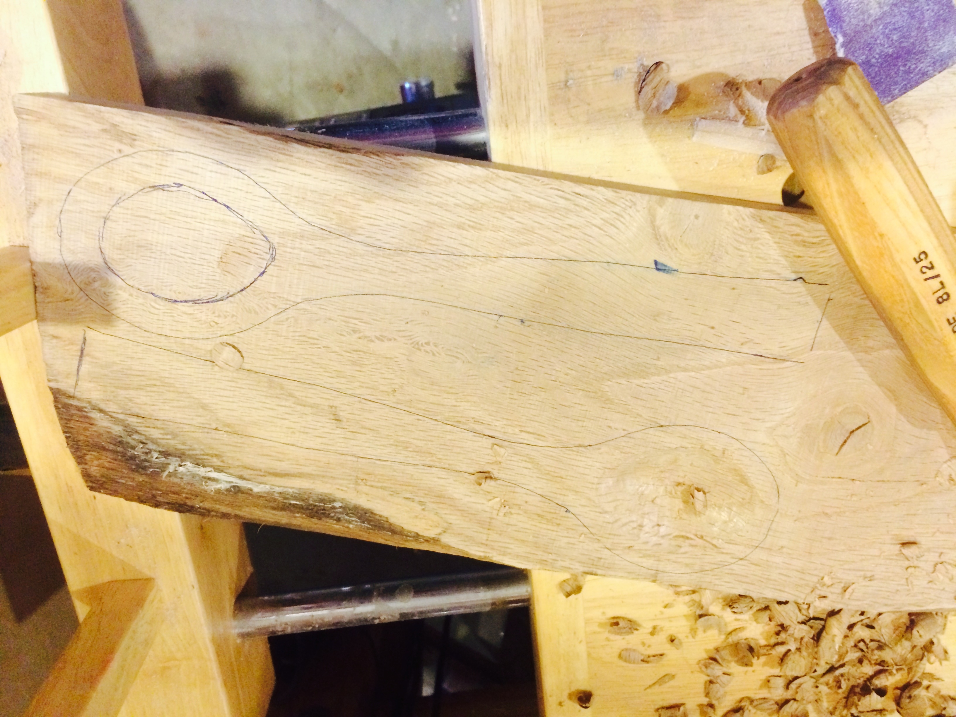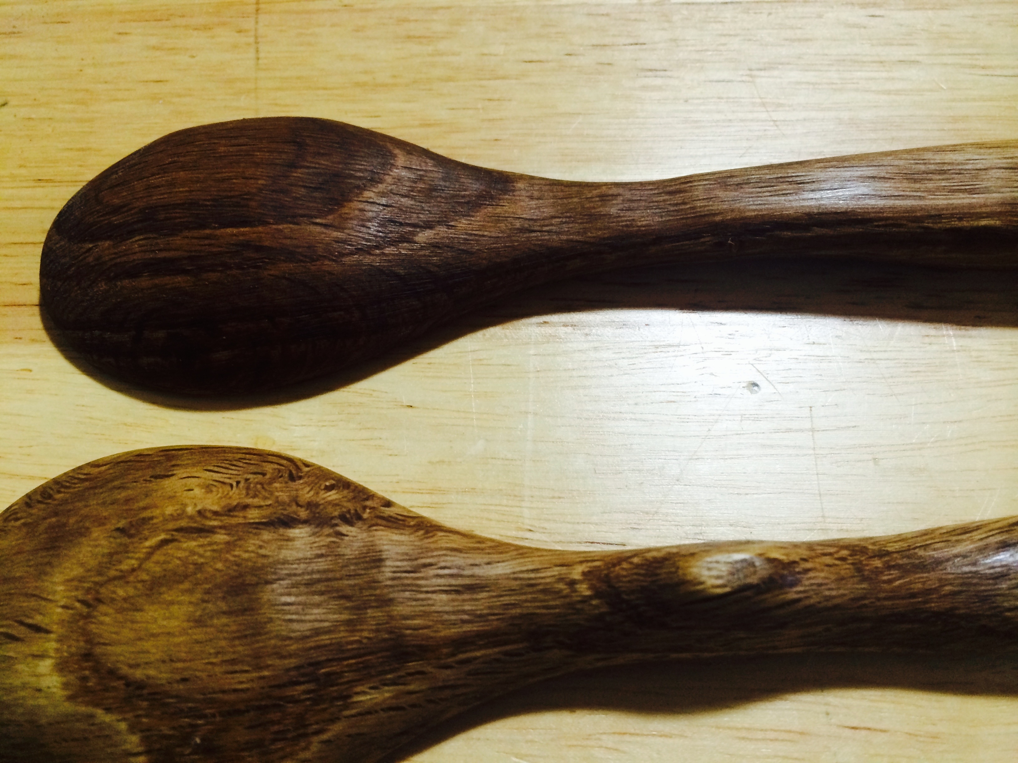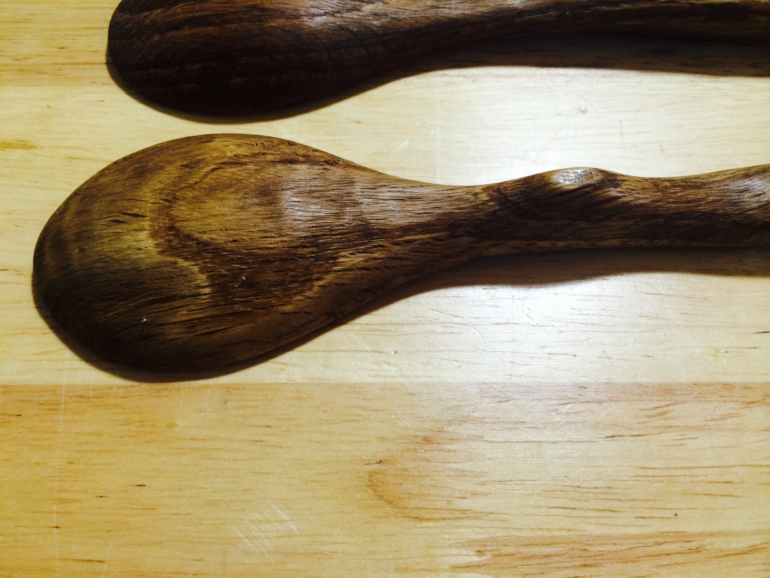 A few months ago I got some oak logs from a friend that was milled into small boards. One of these boards with more nots looked like a good one to turn into two Oak Wooden Spoons. This wood be my first spoons and also the first time that I used my scoop chisel.