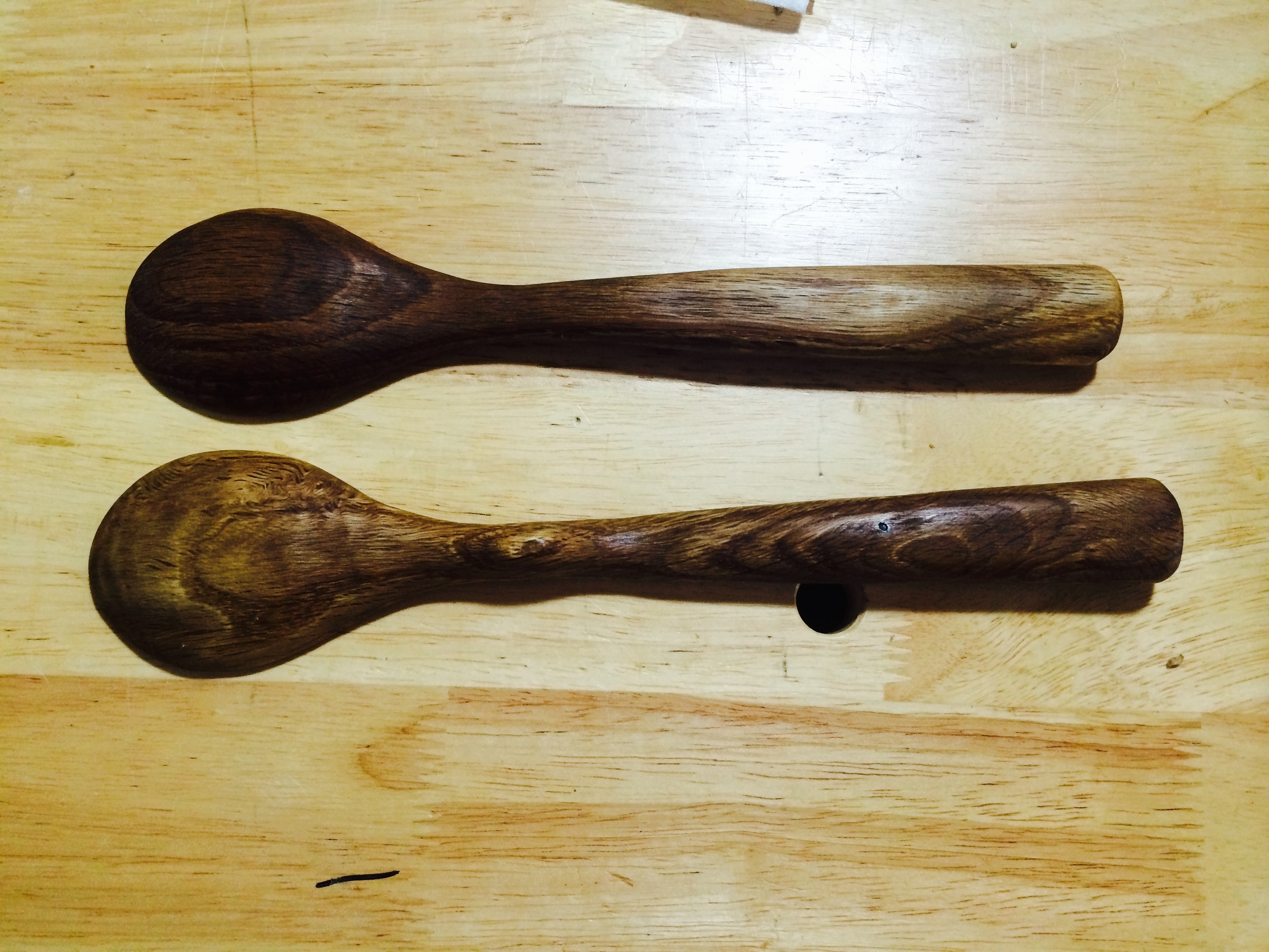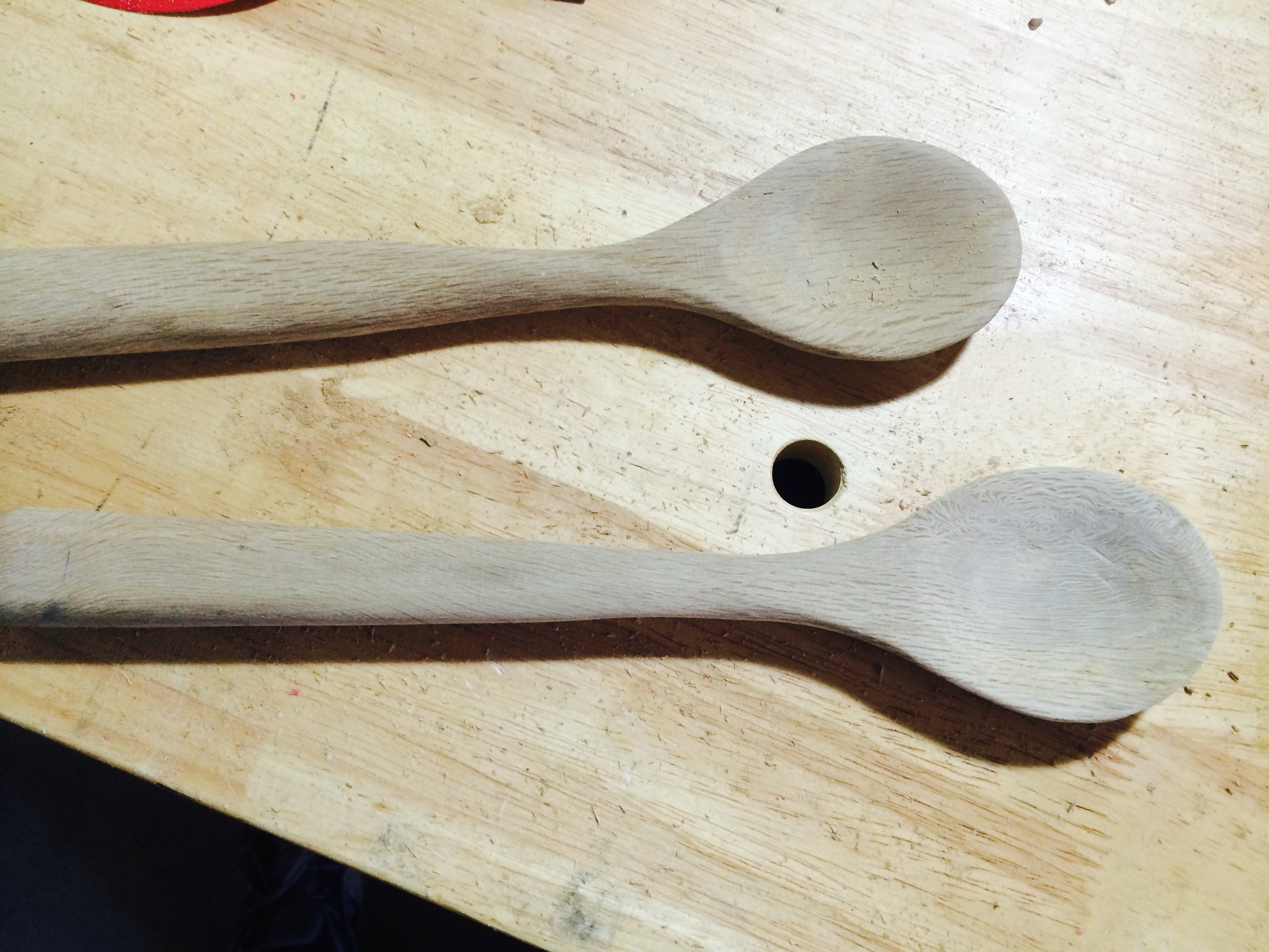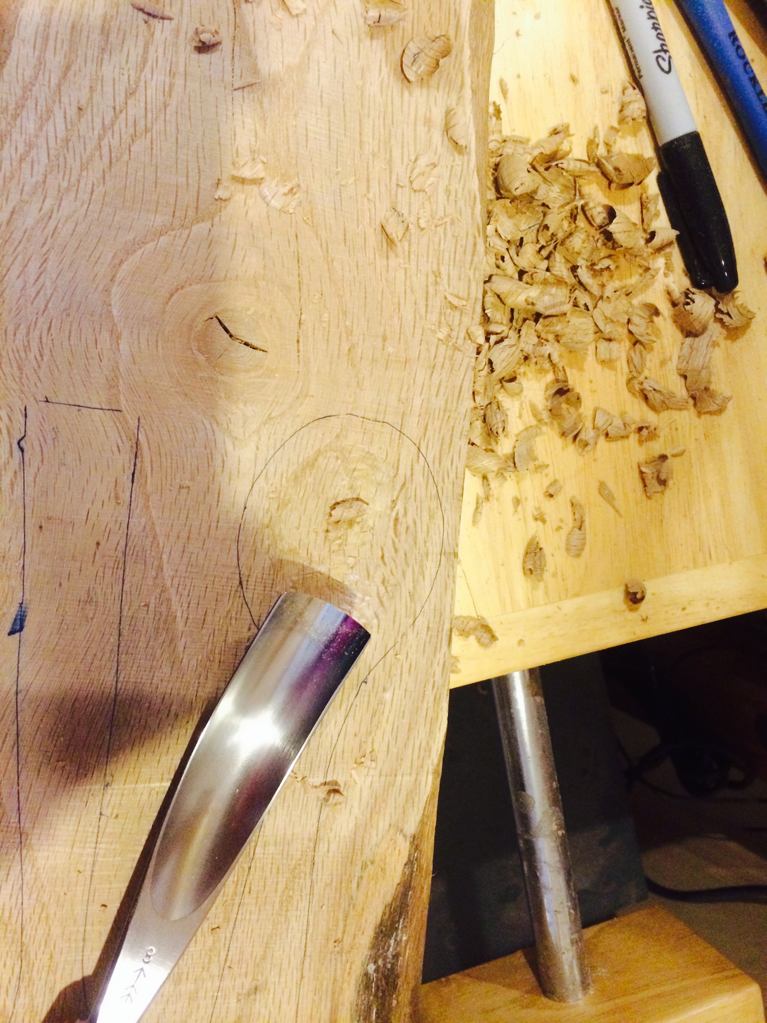 A few months ago I got some oak logs from a friend that was milled into small boards. One of these boards with more nots looked like a good one to turn into two Oak Wooden Spoons. This wood be my first spoons and also the first time that I used my scoop chisel.