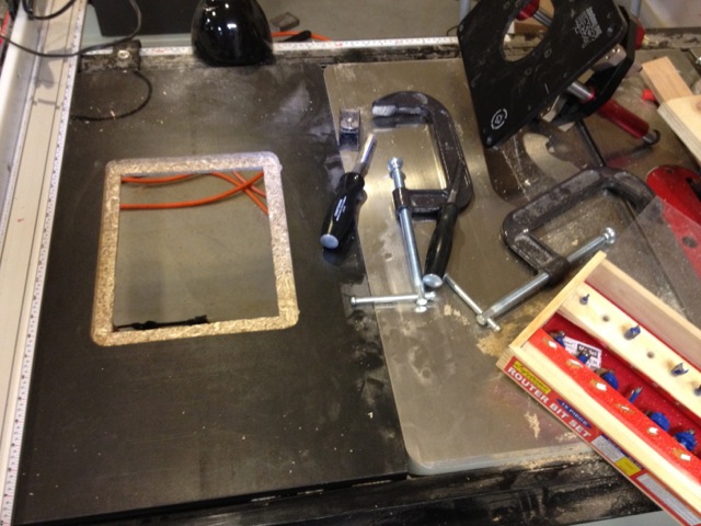 So I don’t have much space to work with in may garage. I always wanted a router table but due to the space problem was stuck with my plunged router. I realty read an article of someone that added an extension wing to their table saw that accommodates the router. The only drawback I saw with this is that the router is stationary and you will still need to get under the table to make all the necessary adjustment. So I have decided that ill be putting it in my wooden extension wing. On a 3/4″ chipboard(Particle board) wing I had to get a little creative.