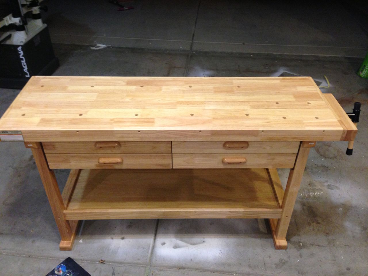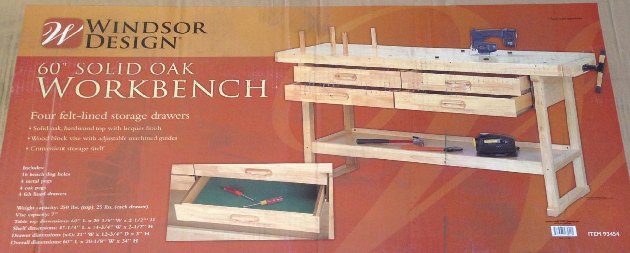 This Solid Oak Workbench was the interim solution until I could build my Roubo Workbench. At his point space and time is both equally valuable. I looked around and eventually was ending up wondering in the local Harbor Freight store. My eye cough the oak workbench they had in the floor, I initially thought it not something they sell but I got hold on one of the sales associates. He got one from the back and at $119 with a 25% discount coupon it was not a bad price at all.